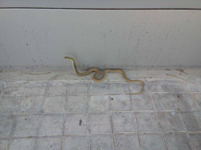 Gracias a Ruben Ledesma y al Foro de Boadilla del Monte en Facebook, hemos conocido que ha aparecido este jueves una culebra bastarda o de Montpellier (Malpolon monspessulanus) en la puerta de una de las clรญnicas dentales que hay en Boadilla del Monte, para ser exactos en Dentix.