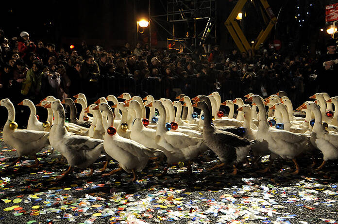 Un desfile precedido por las famosas ocas, 150 ejemplares que como en cantidad inferior, hicieran en el pasado en Madrid el pastorย Miguelรญn,ย que durante casi 20 aรฑos acudรญa puntual con sus mรกs de 50 ocas a dar el arranque a la cabalgata.