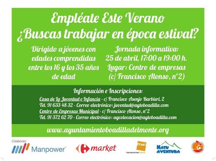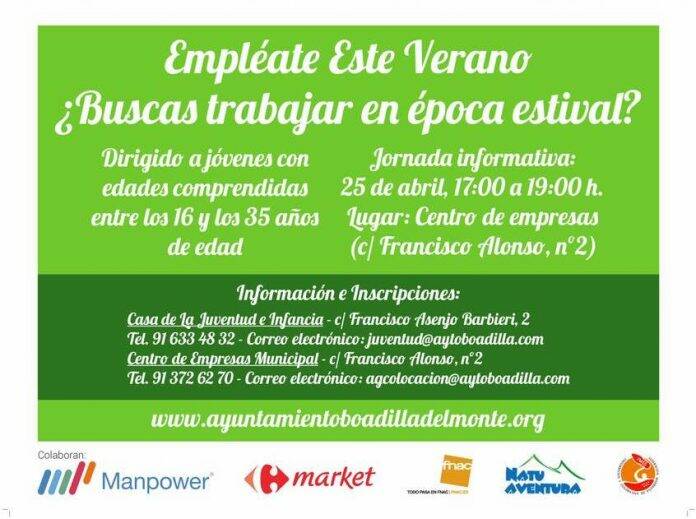 La casa de la juventud del Municipio de Boadilla del Monte reรบne este miรฉrcoles a las 17h, bajo el tรญtulo #EmplรฉateEsteVerano a los jรณvenes que se encuentran buscando trabajo para este verano con las empresas que tienen ofertas abiertas pare el periodo estival.