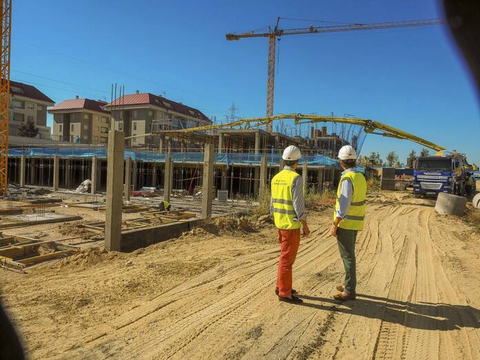 El alcalde de Boadilla del Monte, Antonio Gonzรกlez Terol, acompaรฑado del segundo teniente de alcalde y concejal de Urbanismo, Raimundo Herrรกiz, han realizado una visita de obra a la promociรณn de 95 viviendas protegidas que estรก construyendo la Empresa Municipal del Suelo y la Vivienda de Boadilla (EMSV) en la zona de Valenoso y que estรก previsto que se entreguen durante la primavera de 2019. Las obras avanzan a buen ritmo y actualmente ya se ha levantado su estructura.