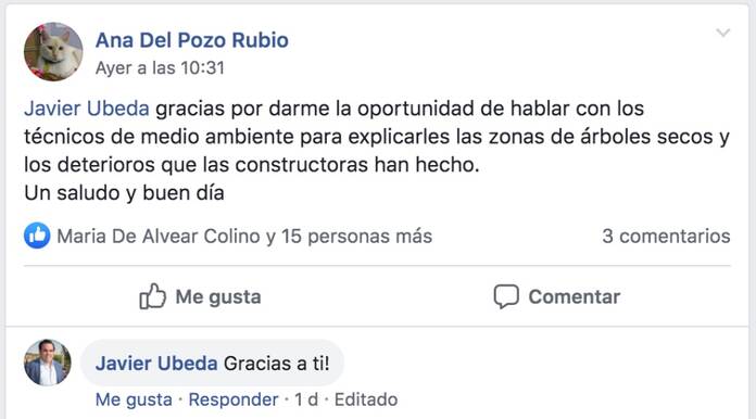 No importa si son unos escombros que han aparecido en el centro de alguno de los montes del municipio, o de un riego que lleva más horas de las adecuadas regando un jardín, todo se avisa por facebook o twitter y en pocos minutos la respuesta del equipo del alcalde llega al vecino, se interesa por lo que ha observado y traslada al órgano correspondiente para tramitar el arreglo.