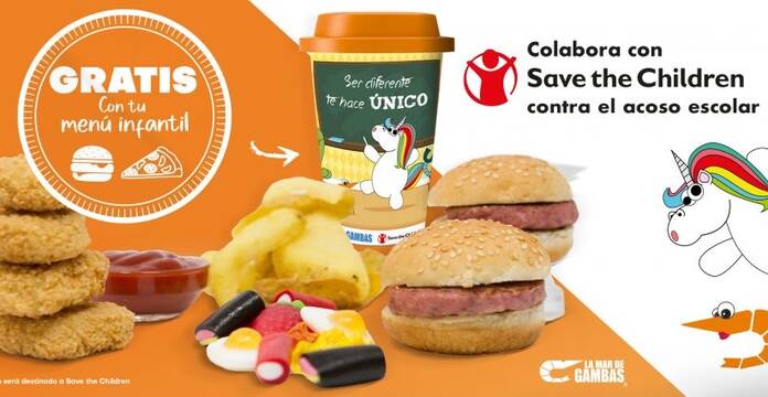 La Mar de Gambas lleva colaborando desde diciembre del pasado año junto a Save the Children para luchar contra el acoso escolar con la campaña “Ser diferente te hace único” en la que se regala un vaso junto con la compra de cualquiera de sus menús infantiles. El beneficio obtenido es destinado a la ONG para luchar contra esta lacra que afecta a la infancia.