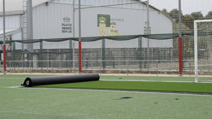Cambio y reparaciones en el césped del complejo deportivo municipal, en Boadilla del Monte