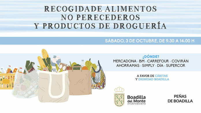 El Ayuntamiento de Boadilla del Monte y las peñas del municipio realizarán otra gran recogida de alimentos el próximo sábado