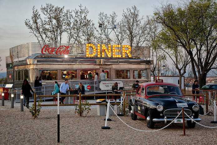 Cuenta con un servicio de comida a vehรญculo, asรญ como con una zona gastronรณmica al mรกs puro estilo americano y variasย food trucks. Ademรกs, los meses de verano disponen deย una zona de hamacas,ย con 160 plazas destinadas a todos aquellos que prefieranย ver la pelรญcula fuera de su coche.