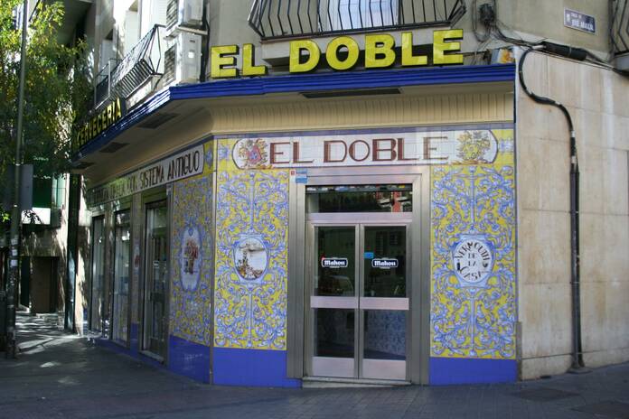 Estamos ante la fachada de cerámica más famosa y fácilmente reconocible de la calle de Ponzano: la de El Doble.