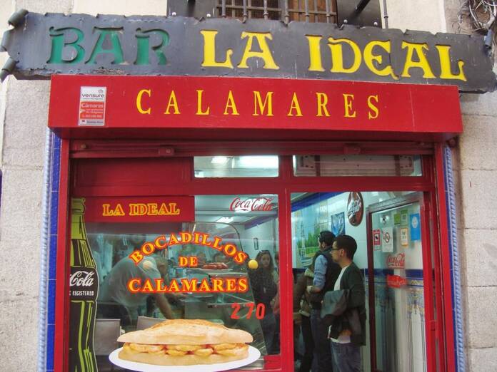 La Ideal es uno de los templos del bocata de calamares. Un local pequeño y típicamente castizo, con una carta sencilla y unas cañas muy bien tiradas.