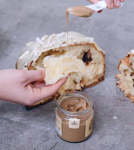 Los venden con cremas artesanales, como la de praliné de avellana, una auténtica perdición. El precio del panettone más la crema es de 36€.