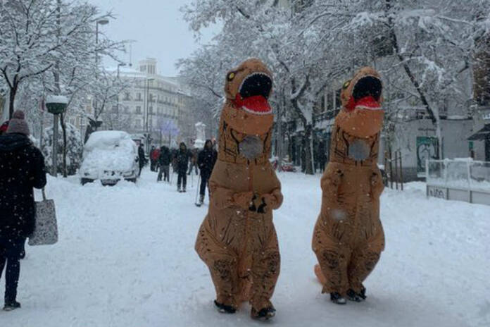 Nevรณ tanto en Madrid que parecรญa el decorado de una pelรญcula invernal. Los madrileรฑos, tirando de ingenio, decidieron disfrazarse para sumarle aรบn mรกs surrealismo a lo que se estaba viviendo en sus calles.
