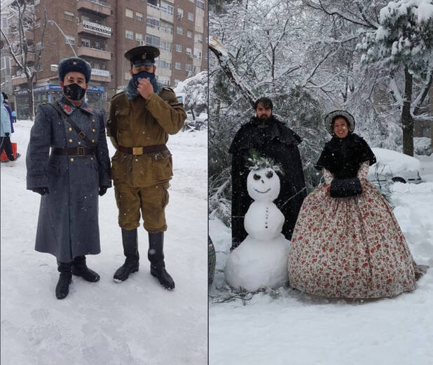 Fue tan histรณrico lo acontecido durante estos dรญas en Madrid que hasta personajes de otras รฉpocas no quisieron perder la oportunidad de jugar con la nieve de Filomena. Manuel de Moya Martรญnez compartรญa estas curiosas imรกgenes en sus redes en las que podemos ver a seรฑoras victorianas y generales del ejรฉrcito ruso paseando por Madrid.