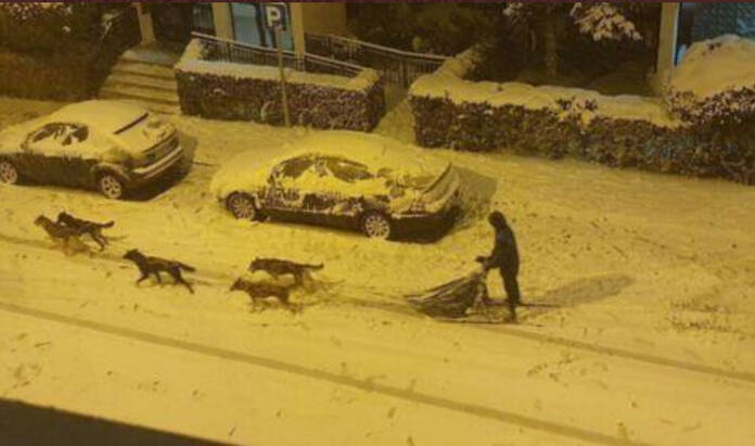 Una de las primeras imรกgenes que nos llegaron a sorprender fue ver un trineo tirado por perros por el barrio de Hortaleza. Esta peculiar estampa sorprendiรณ a los vecinos que no dudaron ni un segundo en inmortalizar esta escena mรกs propia de Alaska que de Madrid.