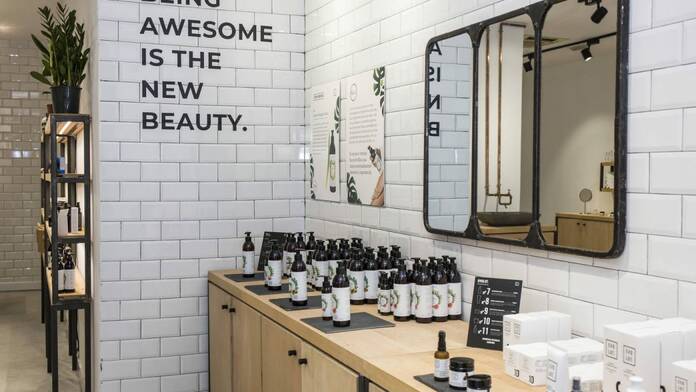 En su tienda no hay diferenciación entre productos para hombres y mujeres, apuestan por la cosmética unisex. Y los presentan por tipo de producto: facial, corporal, cabello y maquillaje, no por marcas.
