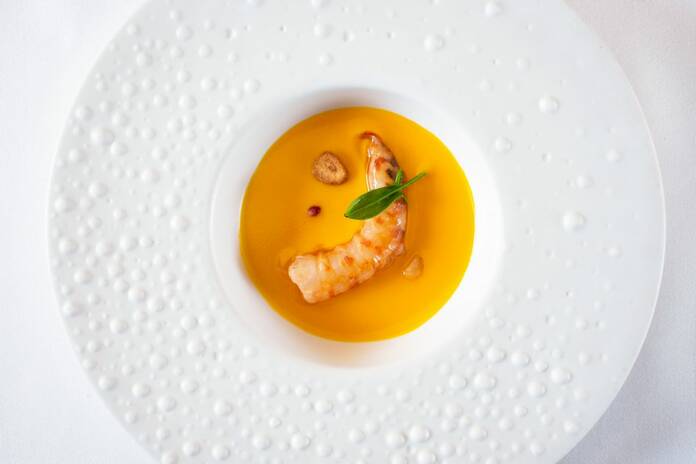Aquรญ puedes escoger entre dos tipos:ย el gazpacho tradicional de verduras o el gazpacho servido con bogavante y huevas de salmรณn.