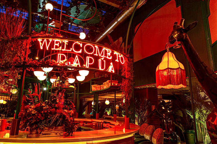 Una decoración impresionante que te traslada a Papúa Nueva Guinea desde que pones un pie en el local.