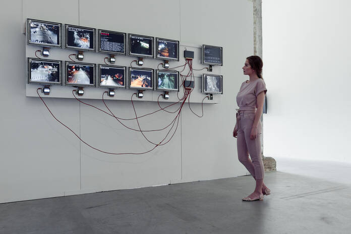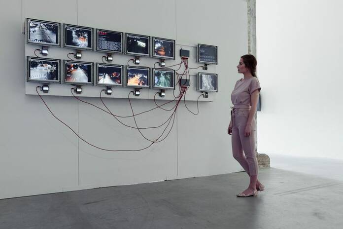 El público puede interactuar de forma lúdica con este ordenador tan peculiar. Se trata de una creación del artista Dries Depoorter.