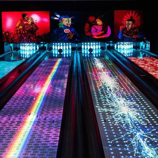 La zona de bolera dispone de una iluminación especial, en la que gracias a su luz negra, te sentirás como si estuvieras en medio de otra galaxia.