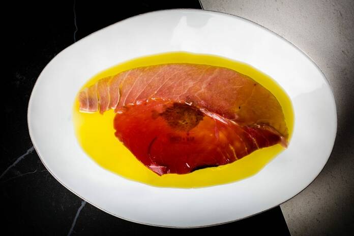 - Plato: Carpaccio de chuletón de atún.