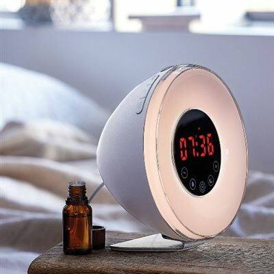 No existe nada mejor para levantarte con alegría: simula entre 10 y 60 minutos de amanecer aumentado gradualmente la luz del 10% al 100%. ¡Y también reproduce el efecto contrario! Si quieres que anochezca en tu cuarto, este aparato va reduciendo la luz entre 10 y 120 minutos hasta apagarse del todo.