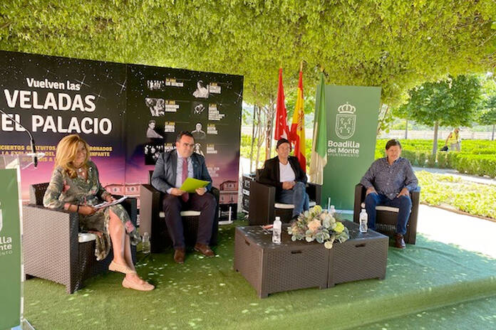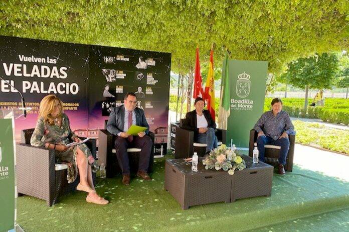 El alcalde de Boadilla del Monte, Javier รšbeda Liรฉbana, ha presentado el programa de conciertos “Las Veladas”, que tendrรก lugar en la Explanada del Palacio del Infante Don Luis entre el 24 de junio y el 10 de julio. Los componentes del grupo Los Secretos รlvaro Urquijo y Ramรณn Arroyo, y la concejala de cultura Mยช รngeles Martรญnez han participado en el acto.