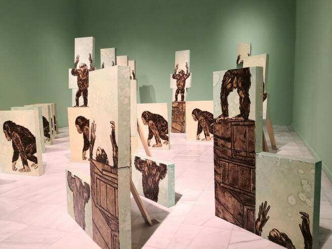 En ese mismo espacio se despliega una denuncia de las pruebas médicas realizadas sobre animales: chimpancés y cobayas utilizados para la investigación de la vacuna contra el virus VIH, en la cuidada instalación ‘Everything is Fine’ (1990-1993).