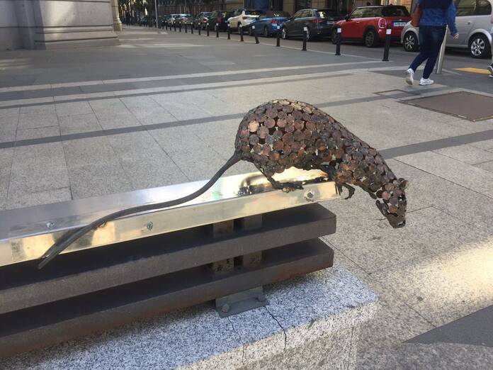 En una de las barandillas, un artista ha instalado una escultura hecha con monedas en la que podemos ver una rata. Nadie sabe cómo ni quién ha instalado esta curiosa figura aquí.