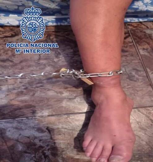 Cuando los policías llegaron al domicilio, los hijos de la víctima reconocieron que tenían retenido a su padre en una habitación, encadenado a la pared, alegando que sufría trastornos mentales. La habitación estaba en condiciones insalubres. Como único mobiliario el hombre retenido tenía un colchón en el suelo.