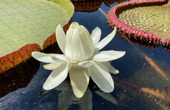 Victoria es el nombre del nenúfar gigante que vive en el estanque del Real Jardín Botánico. Tras cuatro años de intentos, por segundo año consecutivo esta planta nos ha regalado una de sus espectaculares flores.