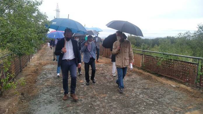 El delegado del Área de Desarrollo Urbano, Mariano Fuentes, junto a las concejalas de los distritos de Usera y Villaverde, Loreto Sordo y Concha Chapa, ha visitado este miércoles las obras que se están desarrollando en el borde de Orcasitas del Bosque Metropolitano, que permitirán conectar tres barrios de Usera con el distrito de Villaverde.