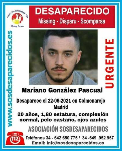 Familiares, amigos, compañeros y Fuerzas y Cuerpos de Seguridad buscan desde ayer miércoles a Mariano González Pascual un joven de 20 años cuya pista se perdió cuando viajaba camino al campus de Colmenarejo de la Universidad Carlos III de Madrid.