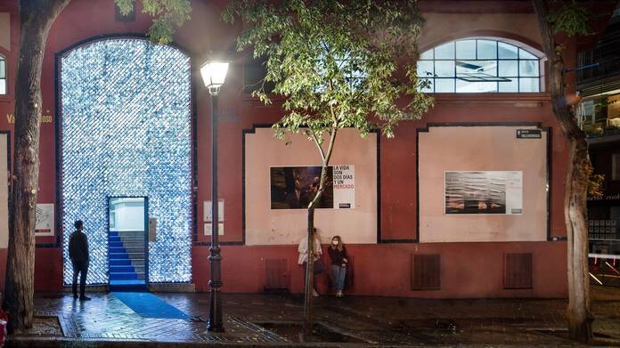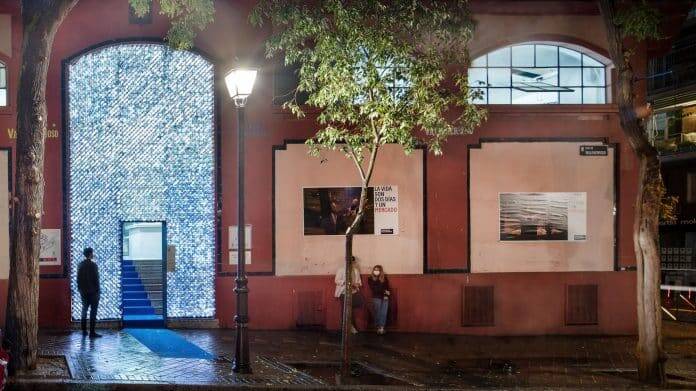 Dando como resultado esta iniciativa, en la que la conocida puerta del mercado fuera una invitación de fuera para adentro. Un portal de seis metros de alto por cuatro de ancho, cubierto por una especie de manto continuo, relleno de botellas recicladas, colocadas de manera perpendicular, de forma que solo quedase disponible un pequeño hueco de acceso, de un metro diez de alto por dos metros de ancho.