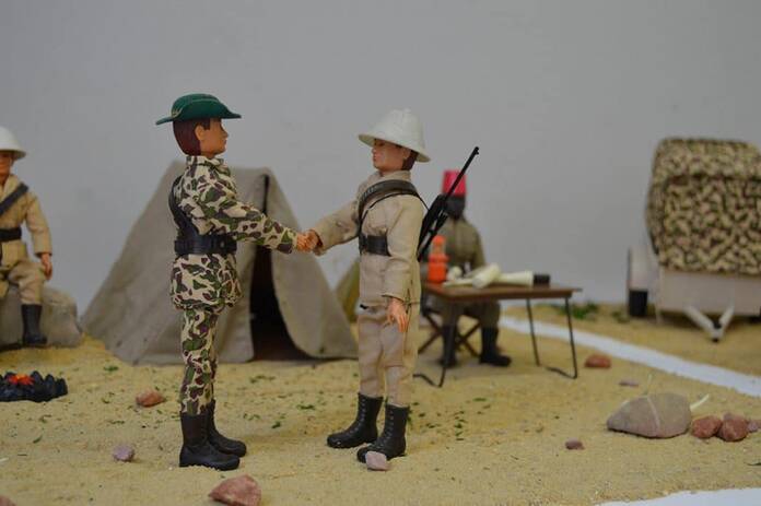 Se exponen un total de 85 piezas de primera generación y de varias temáticas: safari, polar, militar y una pequeña representación de algunos modelos sueltos de la serie civil y piratas, como el piloto de helicóptero y el Grand Prix.