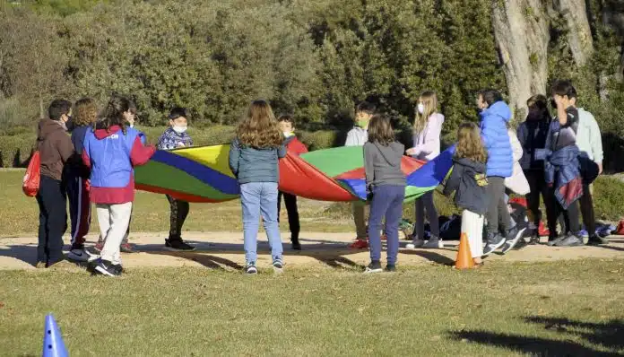 400 Escolares de Boadilla del Monte, en el marco de la VI Semana de las Personas con Diversidad Funcional y el Voluntariado, han participado en una gymkana la instalación al aire libre en El Bosque de la Ciudad Financiera de Banco Santander.