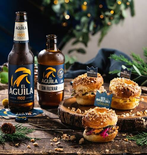 Cerveza El Águila propone un giro de guion: reinterpretar el mítico roscón navideño, para no tener que esperar al postre. Y es que imagina degustar un mini roscón salado mientras te refrescas con una cerveza El Águila 1900 o El Águila Sin Filtrar.