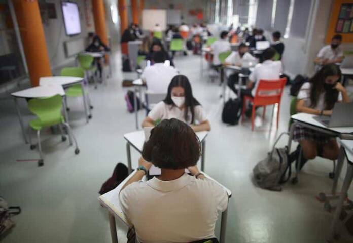 Pese al aumento de casos en los รบltimos dรญas, los contagios se mantienen en una cifra inferior al aรฑo pasado con un 0,8% de alumnos y un 0,56% de aulas en cuarentena, frente a los datos de 2020 que arrojaban un 1,6% de estudiantes en cuarentena el 14 de diciembre.