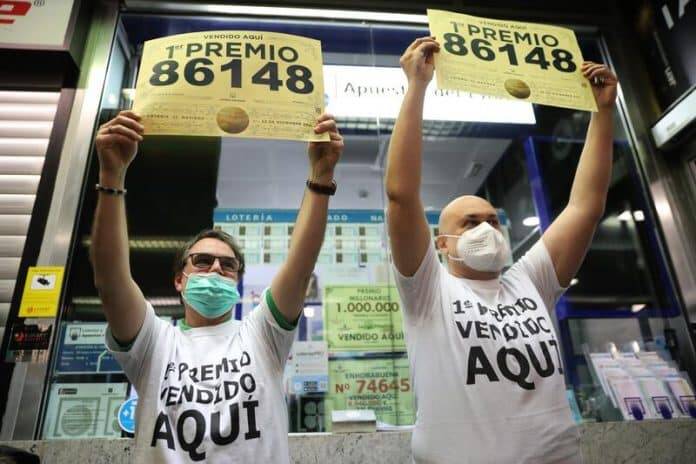 La crítica situación del Covid en Madrid ha dejado atrás, como ya hizo en el sorteo de Navidad del pasado año, la habitual estampa de los premiados con champán a las puertas de las administraciones, dejando la imagen de loteros repletos de alegría posando con carteles alzados de los números premiados y rodeados de periodistas.