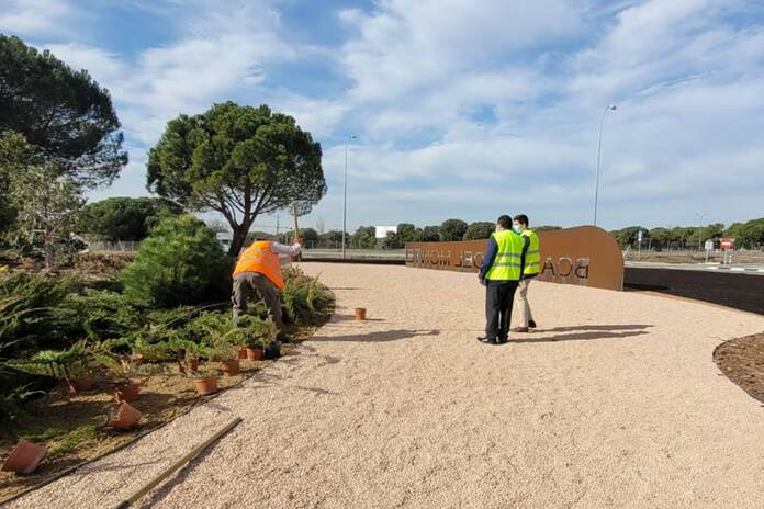 Los trabajos de mejora y embellecimiento del ajardinamiento en la rotonda de Valdecabañas en Boadilla del Monte están a punto de finalizar.