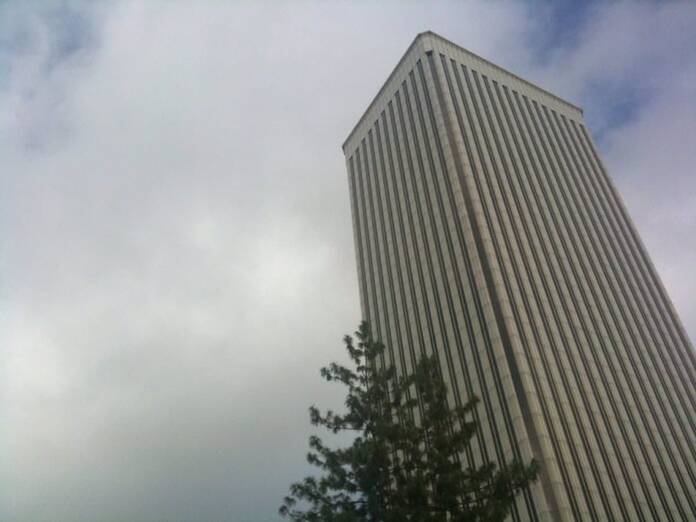 Yamasaki envió a Madrid un proyecto muy parecido a otros suyos y prácticamente igual al de la Rainier Tower, que entonces estaba desarrollando en Seattle, su ciudad natal. A pesar del entusiasmo por llevar a cabo el nuevo rascacielos, el ritmo fue muy lento hasta el punto de que el Ayuntamiento de Madrid llegó a replantearse retirar la licencia y paralizar el proyecto.