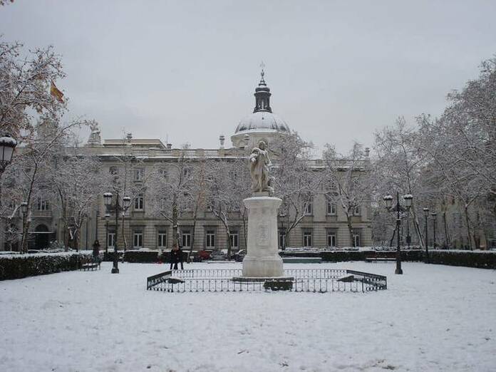 La Plaza de la Villa de París se sitúa junto a la Audiencia Nacional y el Tribunal Supremo.