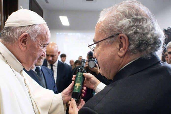 Antonio Mayoralas, presidente de la Fundación Lumière, fue recibido en audiencia por el Santo Padre en diciembre de 2019 en la ciudad del Vaticano. Le hizo entrega del certificado oficial del apadrinamiento y de una botella de aceite procedente del olivar donde se encuentra su olivo apadrinado.