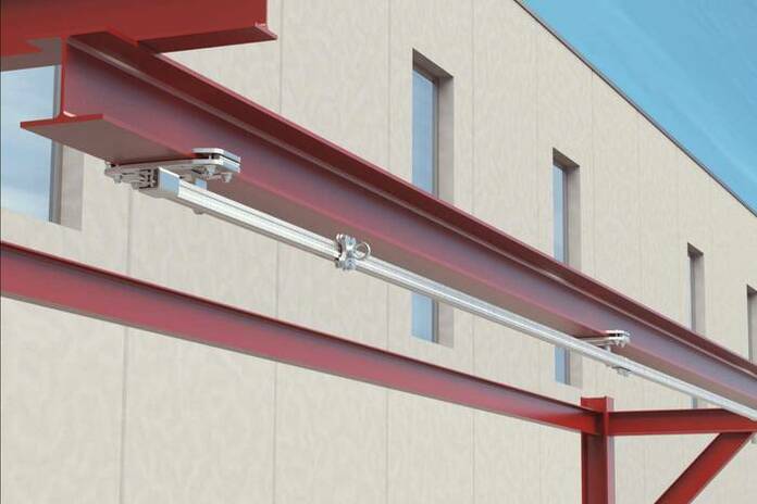 Con una línea de anclaje rígida AL6-R fabricada por MultiGarBen es posible garantizar la seguridad de operarios que cumplen tareas de construcción o mantenimiento en industrias, fábricas y otros edificios.