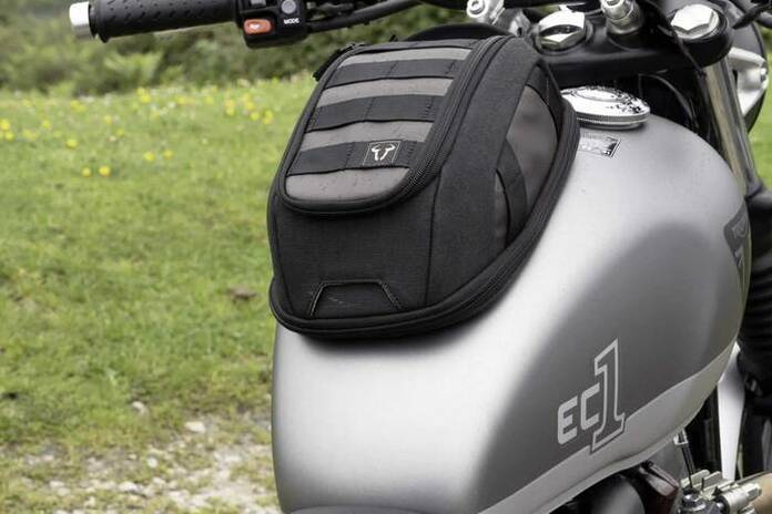 SW-MOTECH cuenta con diversas opciones de bolsas de depósito, en un amplio abanico de precios; desde la bolsa de depósito PRO, con sistema de fijación del anillo, que simplifica el ajuste adecuado a las necesidades de cada conductor; la opción magnética, que permite fijar y retirar fácilmente la bolsa de depósito, garantizando una sujeción firme gracias a los potentes imanes, y la clásica bolsa de depósito con correas y hebillas.