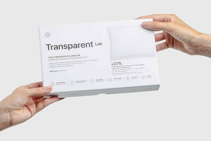 La funda de almohada de Transparent Lab ocasiona menos fricción a la piel ayudando a reducir y prevenir la aparición de arrugas. Además, mejora en un 27 % los niveles de hidratación de la piel en 7 días comparado con una funda de algodón.