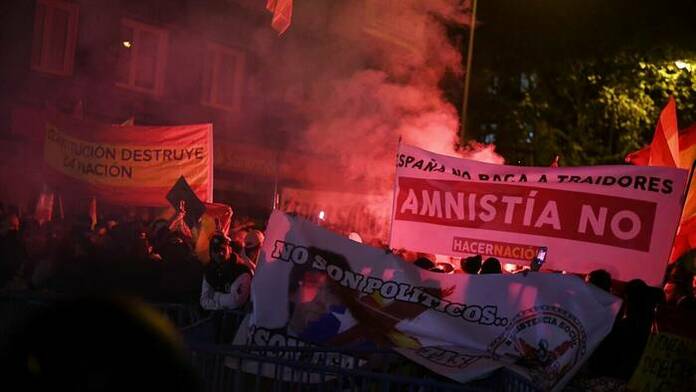 El lunes ya se habían vivido momentos de tensión debido a las concentraciones que se dieron en diferentes ciudades del país. Consignas como «Pedro Sánchez a prisión», «Que te vote Txapote», «Puigdemont a prisión» o «España no se vende» resonaron en las calles, y la situación se agravó con tres detenciones.