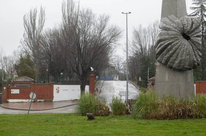 Entrada al centro de Emergencia, Acogida y Derivación en el Acuartelamiento ‘Primo de Rivera’, donde se alojan migrantes procedentes de Canarias, a 19 de enero de 2024, en Alcalá de Henares, Madrid (España).