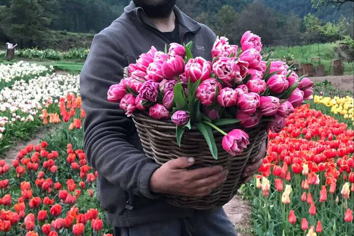 Tenemos más de 20 tipos de flores diferentes, entre las cuales hay más de 500 variedades entre todas ellas; diferentes colores, formas, texturas y un mundo de color. Plantamos tulipán, narciso, jacinto, muscari, girasol, lilium, allium, dalia, cosmos, frittilaria, anémonas, gladiolos, ranúnculos. Partimos en dos temporadas, la de primavera y la de verano. En la temporada de primavera, que comienza a mediados de marzo hasta finales de junio, se pueden encontrar tulipanes, jacintos, muscari, girasol, etc. Aquí encontraréis más de 200.000 flores en nuestros campos. Durante el verano, que es cuando arranca la siguiente temporada, que va de julio a finales de octubre, se pueden encontrar dalias, girasoles, cosmos, y otras variedades estivales, encontrando un total de más de 500.000 flores.