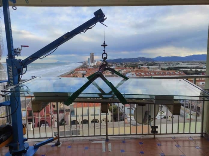 Valencia, xx de octubre de 2024.-La empresa valenciana Elevall ha patentado la primera grúa plegable capaz de elevar cargas de hasta 400 kg y a una altura de 100 metros de manera sostenible con su modelo EK400. Denominada Elevall Smart Crane System, se trata de una grúa plegable que permite subir grandes volúmenes (muebles, ventanas, toldos, etc.) con la asistencia de una o dos personas, minimizando los riesgos laborales por lesiones, el impacto medioambiental y los trámites burocráticos, al no precisar el cortado de calles.